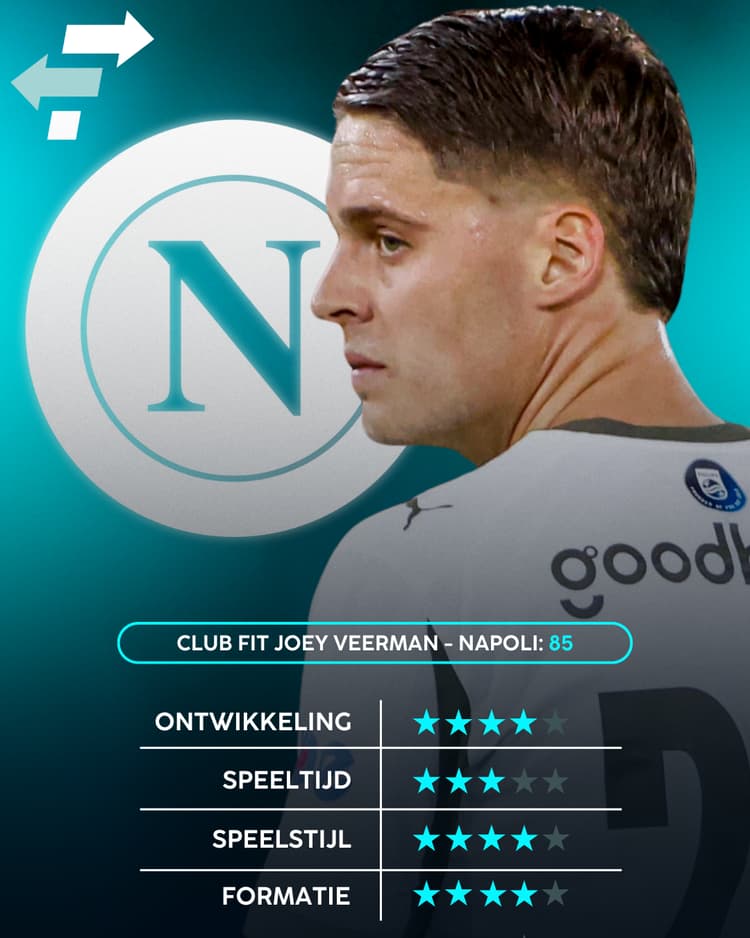 Mocht het tot een transfer naar Napoli komen, dan komt Veerman terecht in een elftal met meer bekende gezichten. Ex-Ajax-speler David Neres is ook terug te vinden in de selectie van de Italianen. Datzelfde geldt voor grote sterren als Kevin De Bruyne en Scott McTominay.