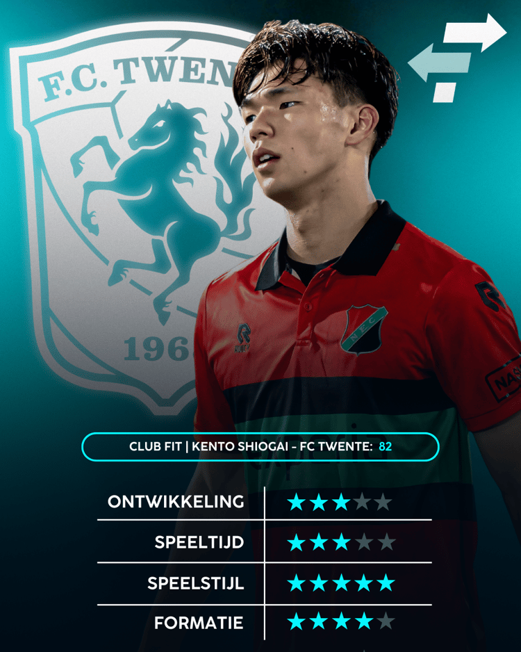 Shiogai gaf zelf dus al te kennen dat hij nog steeds wel oren heeft naar een transfer. Mogelijk vindt de Japanner een uitweg binnen Nederland. Uit de Career Advice Tool van SciSports blijkt namelijk dat de spits een Club Fit van 82 heeft met FC Twente. Vooral de speelstijl van de Tukkers past goed bij Shiogai. Op dat vlak wordt namelijk de hoogst haalbare score bereikt.
