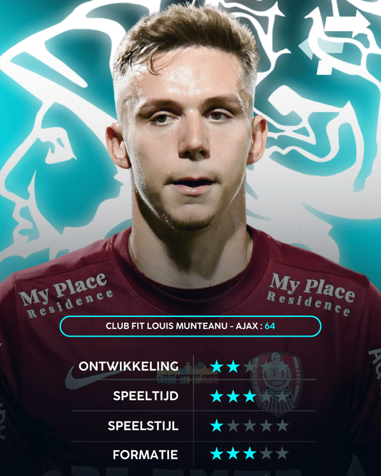 Ondanks dat het niet definitief tot een deal kwam, lijkt juist dat de beste deal te zijn geweest voor Ajax. Data van SciSports wijst namelijk uit dat er geen sprake is van een goede match tussen de club en Munteanu. Uit de Career Advice Tool blijkt namelijk dat er sprake is van een Club Fit van slechts 64. Vooral opvallend is dat de Roemeense goalgetter slechts één ster scoort op het gebied van speelstijl. Ook op alle andere onderdelen is de score niet overtuigend.
