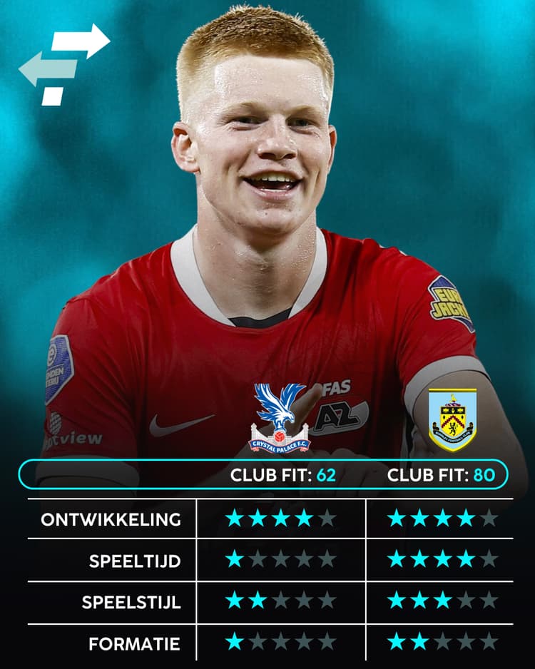 Smit lijkt er echter goed aan te doen door Crystal Palace ondanks de beloftes links te laten liggen. Uit de Career Advice Tool van SciSports blijkt namelijk dat hij een Club Fit van slechts 62 heeft met de club uit Londen. Vooral het potentiële gebrek aan speeltijd springt daarbij in het oog. Mocht Smit toch graag naar de Premier League willen, dan lijkt Burnley geschikter. De Career Advice Tool wijst namelijk uit dat hij een Club Fit van 80 heeft met die club, waar Smit ook veel meer kans maakt om te spelen.