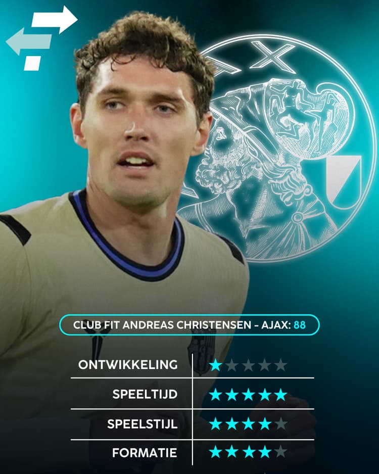 Christensen lijkt bovendien ook om andere redenen een zeer interessante optie voor Ajax. Data van SciSports wijst namelijk uit dat er een goede match is tussen de Amsterdammers en de centrale verdediger, die bij Barcelona weinig aan spelen komt. Uit de Career Advice Tool van het data-analysebureau komt naar voren dat er sprake is van een Club Fit van 88.