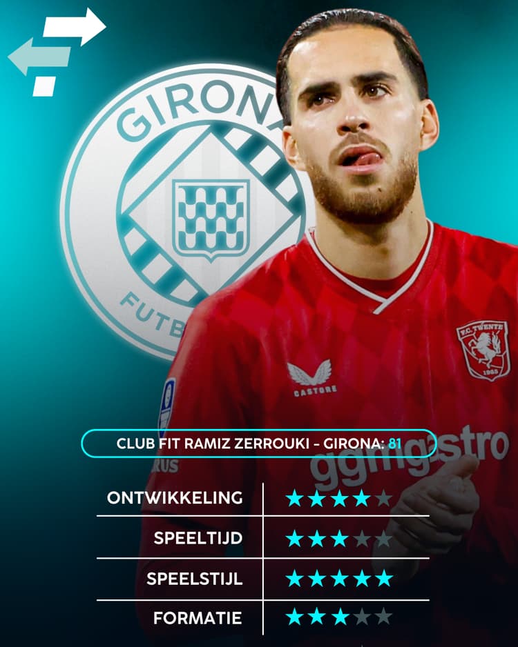 Ramiz Zerrouki verliet Feyenoord afgelopen zomer op huurbasis voor een terugkeer bij FC Twente. Na dit seizoen lijkt de middenvelder open te staan voor een eerste avontuur buiten de Nederlandse landsgrenzen. Zijn ideale nieuwe uitdaging lijkt hij in Spanje te kunnen vinden. Op basis van data van SciSports blijkt Girona een goede match te zijn.