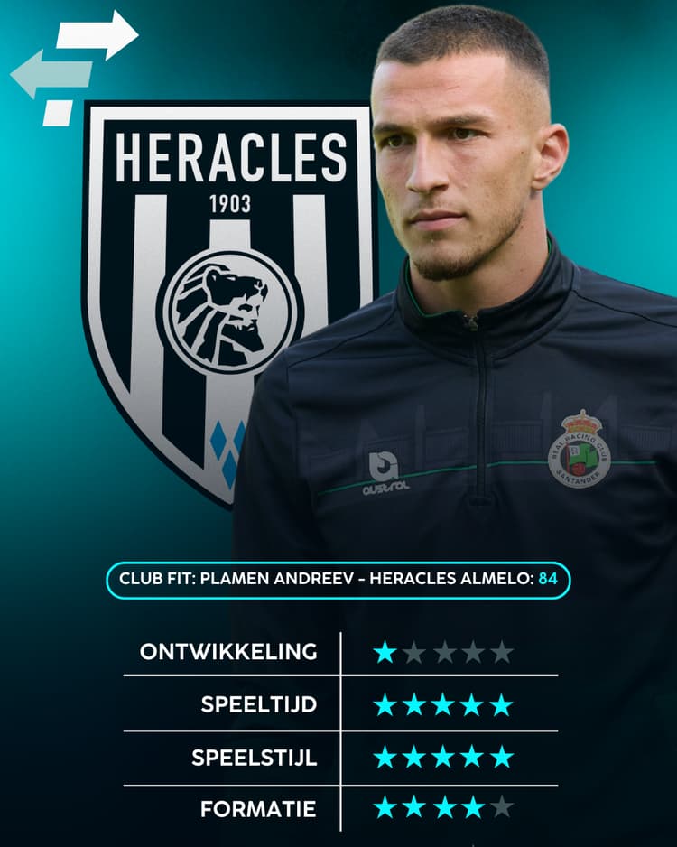 Mocht Heracles Almelo besluiten om een nieuwe doelman aan te trekken, dan lijkt een huurdeal met Feyenoord de club geen windeieren te leggen. Plamen Andreev scoort in de Career Advice Tool van SciSports namelijk een Club Fit van 84 met de ploeg uit Almelo. Bij Heracles heeft de Bulgaar uitzicht op meer dan genoeg speeltijd, terwijl ook de speelstijl en formatie een goede match lijken.