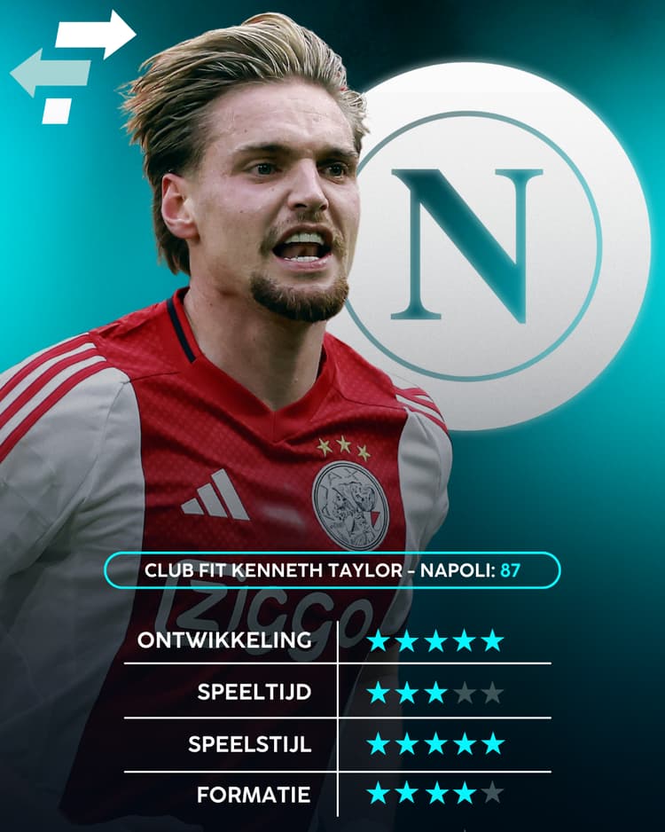 Napoli zou echter meer spelers op de korrel hebben. Onder meer Kobbie Mainoo, die bij Manchester United uit de gratie geraakt is, is ook in beeld volgens La Gazzetta dello Sport. Ajax lijkt wel een fors bedrag aan de verkoop van Taylor over te kunnen houden. De middenvelder ligt nog tot medio 2027 vast en beschikt over een geschatte transferwaarde van 30,8 miljoen euro. Mocht Napoli voor Taylor kiezen dan is er wel een forse concurrentiestrijd die hij moet zien te winnen. Met onder meer Billy Gilmour, Stanislav Lobotka en André-Frank Zambo Anguissa beschikt men al over veel kwaliteit op het middenveld.