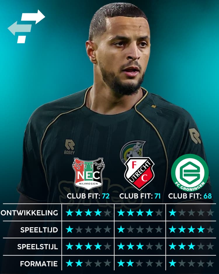 Voor Mohamed Ihattaren lijkt het bij een vertrek beter om de Eredivisie links te laten liggen en opties in het buitenland te onderzoeken. Uit data van SciSports blijkt er namelijk geen enkele club in de Eredivisie te zijn met wie hij een goede match heeft. De drie clubs bij wie hij de beste Club Fit scoort in de Career Advice Tool blijken namelijk allemaal geen geschikte combinatie te vormen. Zo is een transfer naar NEC of FC Utrecht geen goed idee vanwege een gebrek aan speeltijd, terwijl FC Groningen qua ontwikkeling en formatie weer niet aansluit. Bovendien zijn de Club Fits met 72, 71 en 68 ook aan de lage kant.
