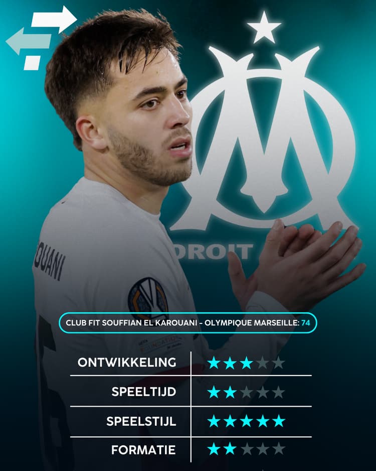 Dat hij weinig speeltijd krijgt, lijkt ook logisch. Bij Marseille beschikt men met Emerson en Ulisses Garcia namelijk al over twee linksbacks. Beide blijken uit data van FootballTransfers ook een hogere Skill-rating te hebben dan El Karouani. Wel heeft de huidige back van Utrecht een hoger potentieel, waardoor hij op den duur de overhand moet kunnen krijgen. Voor een plekje in de WK-selectie van Marokko lijkt met het oog op gebrek aan speeltijd een transfer naar Marseille echter geen slimme zet.