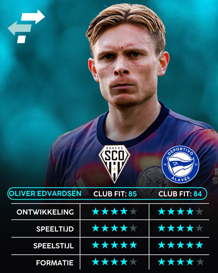 Opvallend is dat Oliver Edvardsen met zijn Skill-rating van 60.6 volgens data van FootballTransfers de beste aanvaller kan worden van Angers. Geen enkele andere aanvaller behaalt die Skill-rating. Tegelijkertijd heeft hij bij Alavés de kans om de beste linksbuiten te worden. Voor Edvardsen lijkt een stap naar één van die clubs dan ook het beste te zijn.